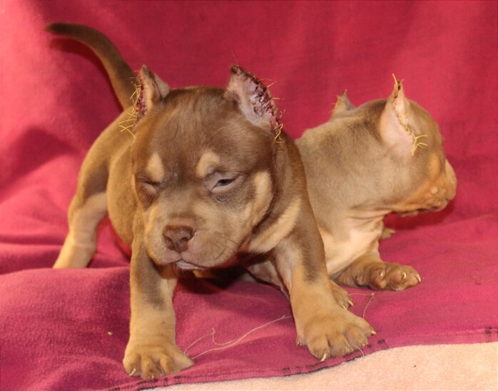 Купировка и прививки по возрасту.(купирование хвостов и ушей производится сразу всему помету в максимально подхожящем для этого возрасте).